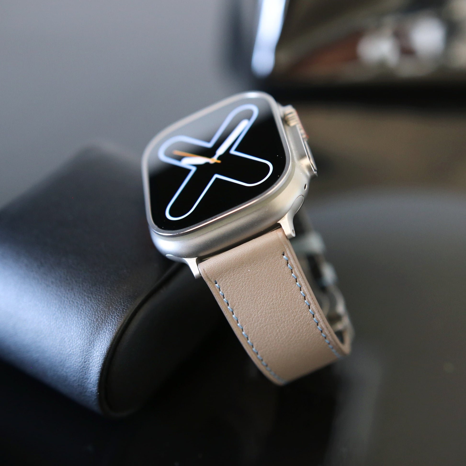 Experience timeless elegance and premium comfort with our Terre Bleue Edition band. Crafted from premium swift leather, known for its exceptional softness and exquisite craftsmanship, favored by luxury houses like Hermes.
